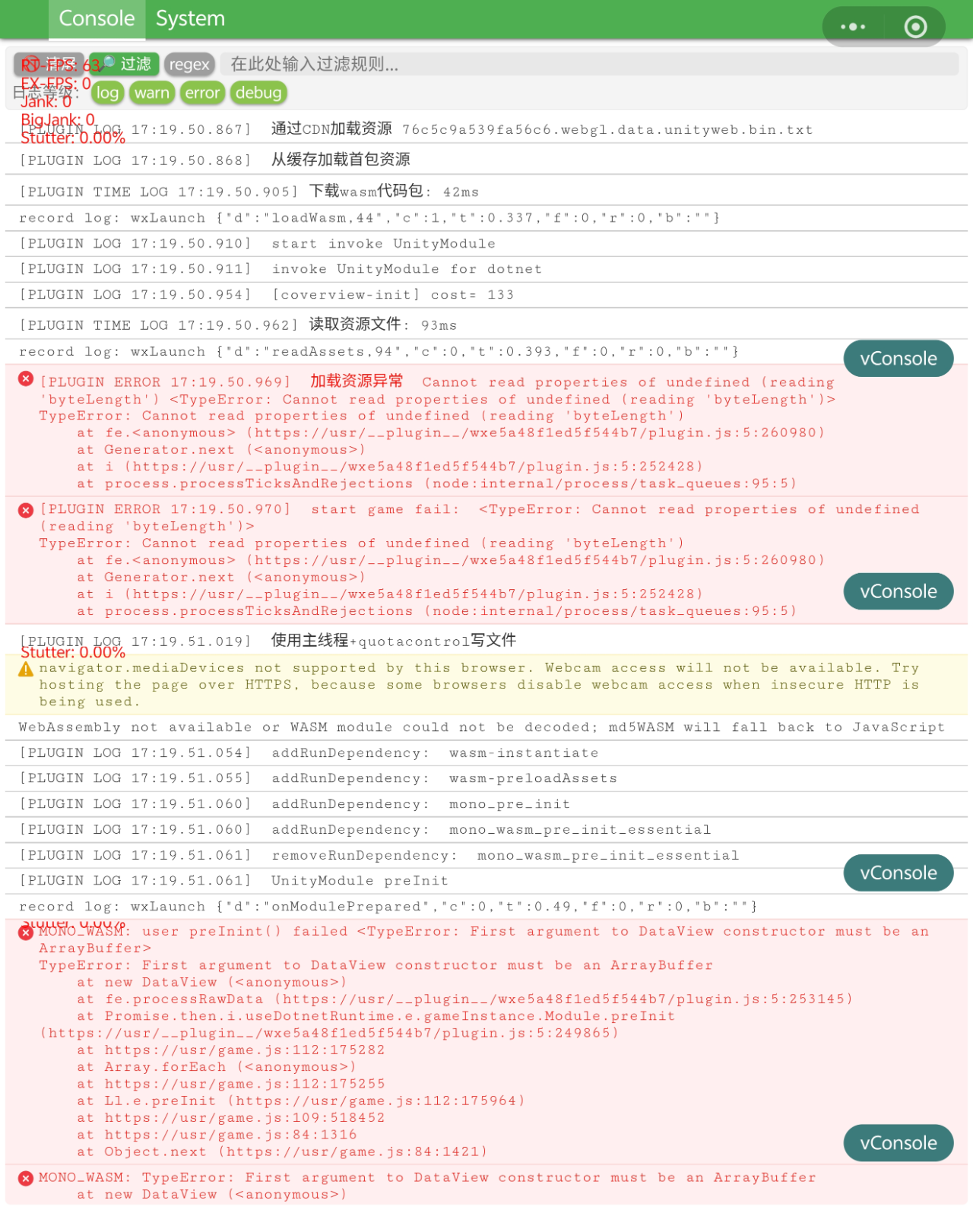 错误日志如下,在读取缓存的*.webgl.data.unityweb.bin.txt文件时出错,正常情况下会输出data content size=xxxx