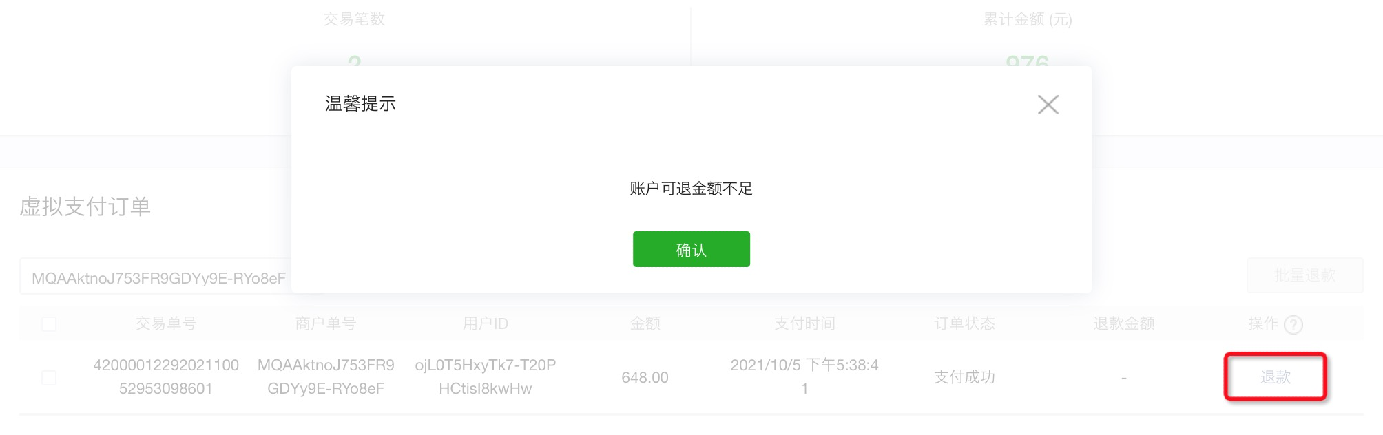 小游戏未成年人充值退款,操作退款时,显示「账户可退金额不足」,需要如何处理?@小游戏运营专员 - 宏