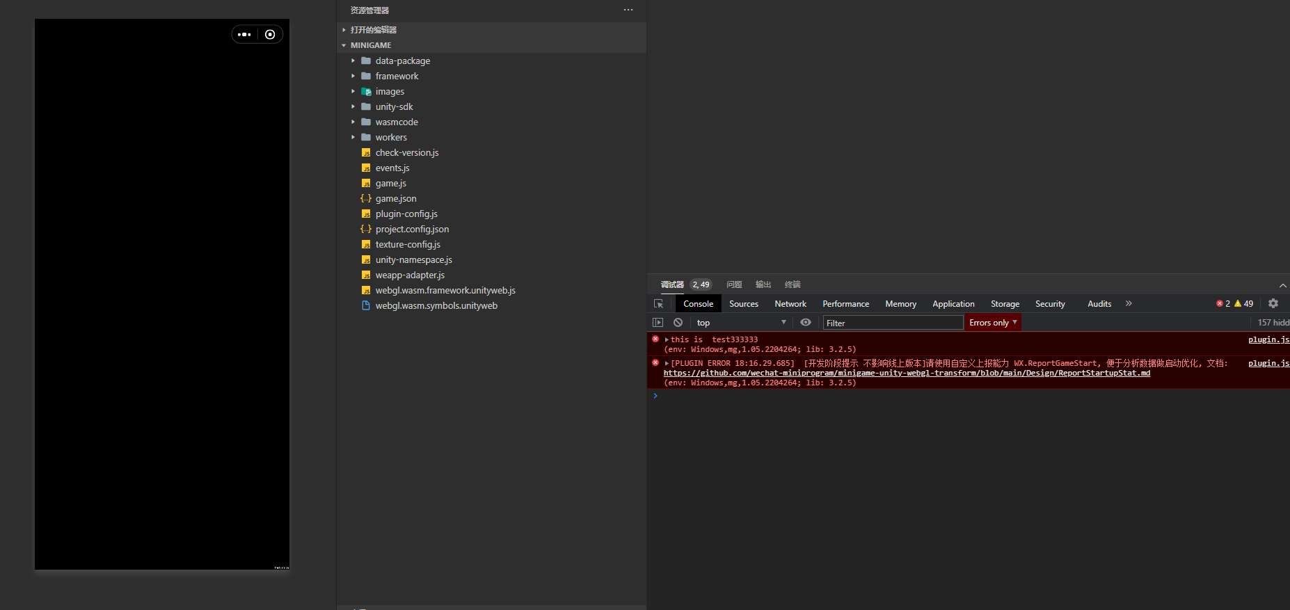 在Unity运行时可以,但是在开发者工具中就是黑屏?不知道问题出在了那里,