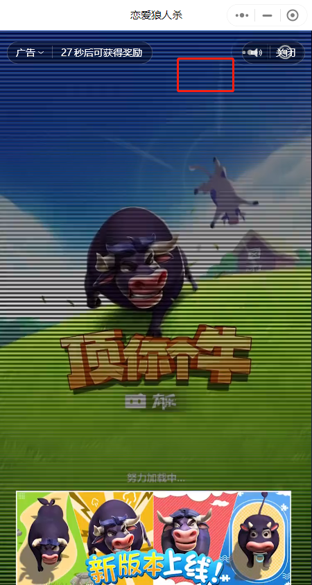 复现过程:在观看广告的界面中连续点击游戏圈的位置,位置如图中红框区域。