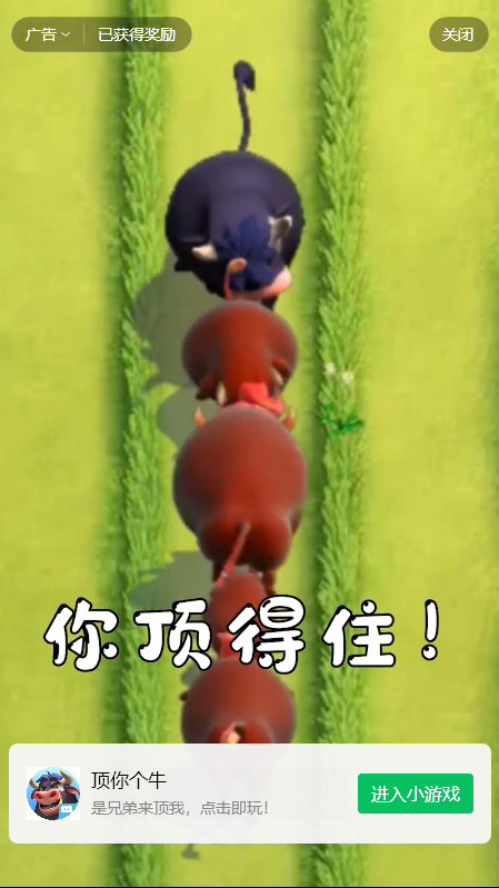 结果:广告时间马上归零,显示“已获得奖励”,离开后可获得对应奖励