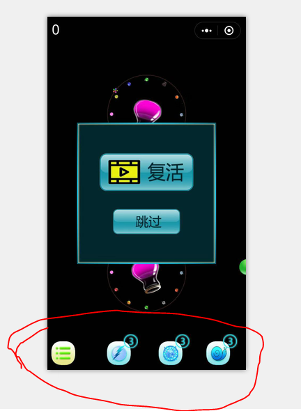 广告组件确实会遮挡这4个按键,但这4个按键在这个页面中本来就是不可用的状态。这几个按键是游戏过程中的技能按钮,当复活页面显示时,已经处于非游戏的状态了,按键自然就不起作用了,也就不怕遮挡了。