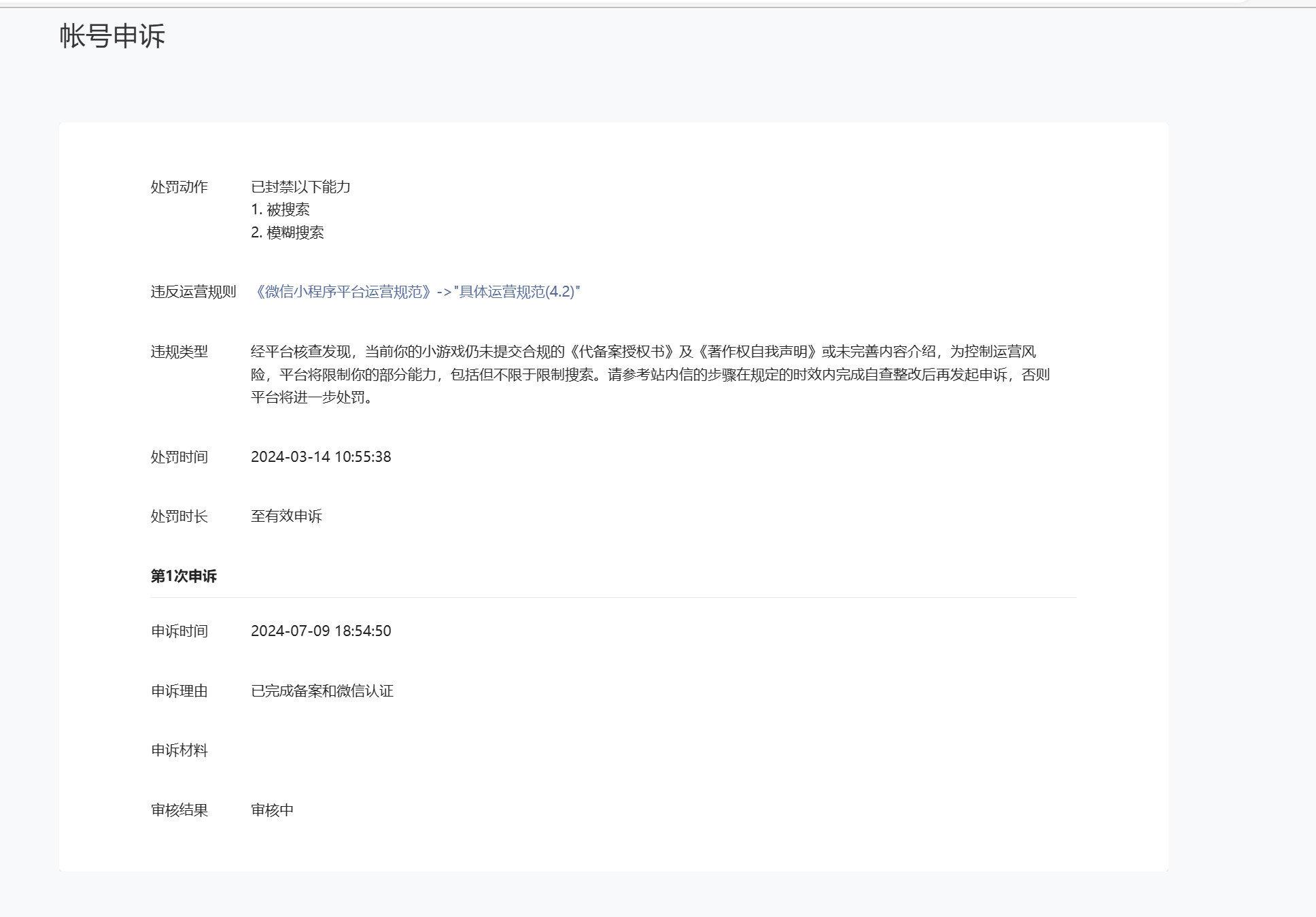 申诉审核一直都没有下文,收认证费用这么积极。打过客服电话,都是机器人,根本联系不上真人。就芝麻点事,审核这么久