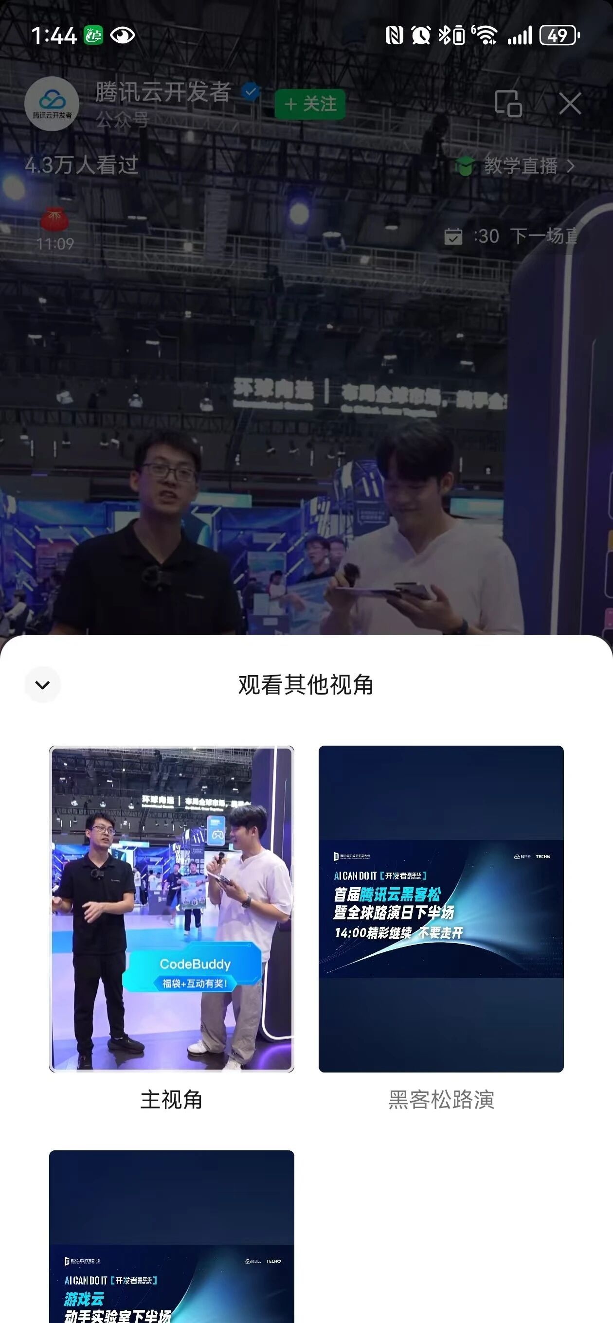 今天在观看 腾讯云开发者 视频号的直播时候,发现突然有一个“观看其他视角”的功能