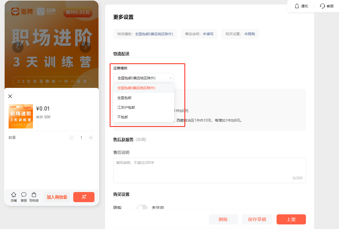 你好,目前【视频号小店】非实物商品的类目,可以在上架商品选择物流配送为无需配送类型,谢谢。
