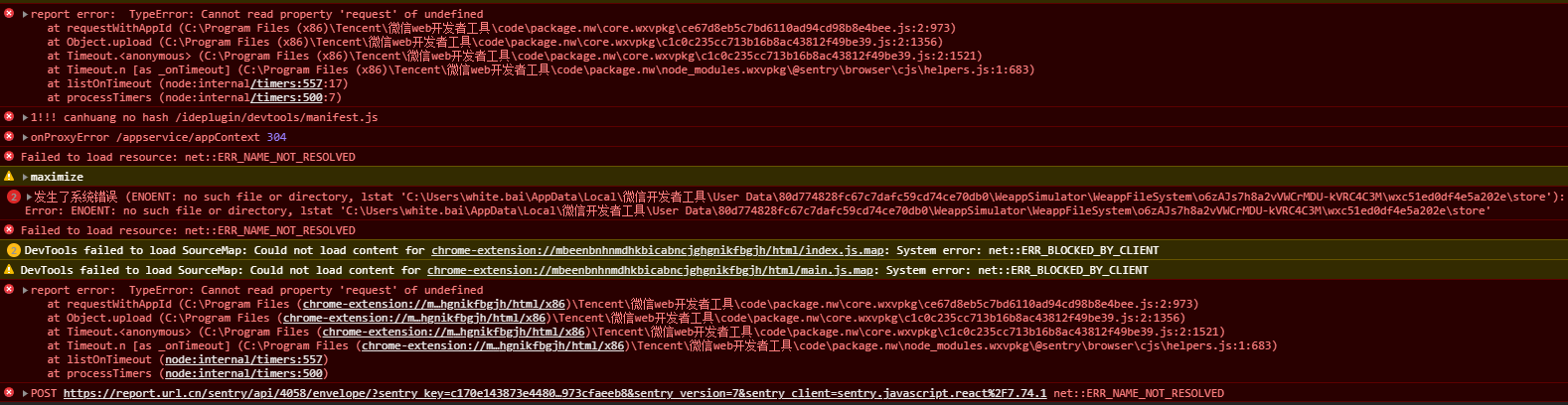 尝试了清理AppData目录下的缓存、检查了project.config.json 、赋予更大权限、卸载重装、管理员运行等 都无法展示信息。