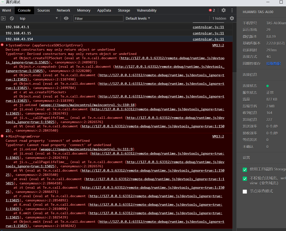 代码片段:(实例化tcp就出错误了,address为局域网IP地址)