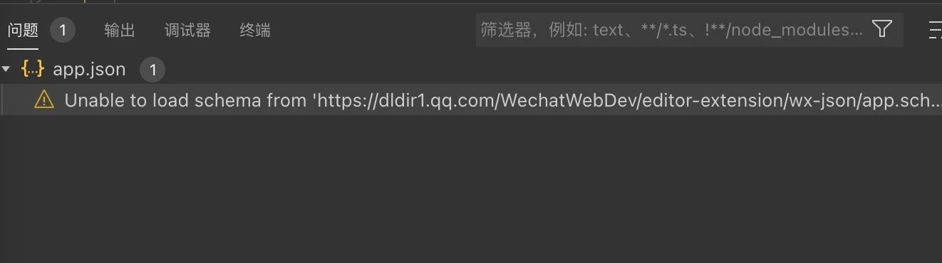 Unable to load schema from 'https://dldir1.qq.com/WechatWebDev/editor-extension/wx-json/app.schema.json': Request vscode/content failed unexpectedly without providing any details.