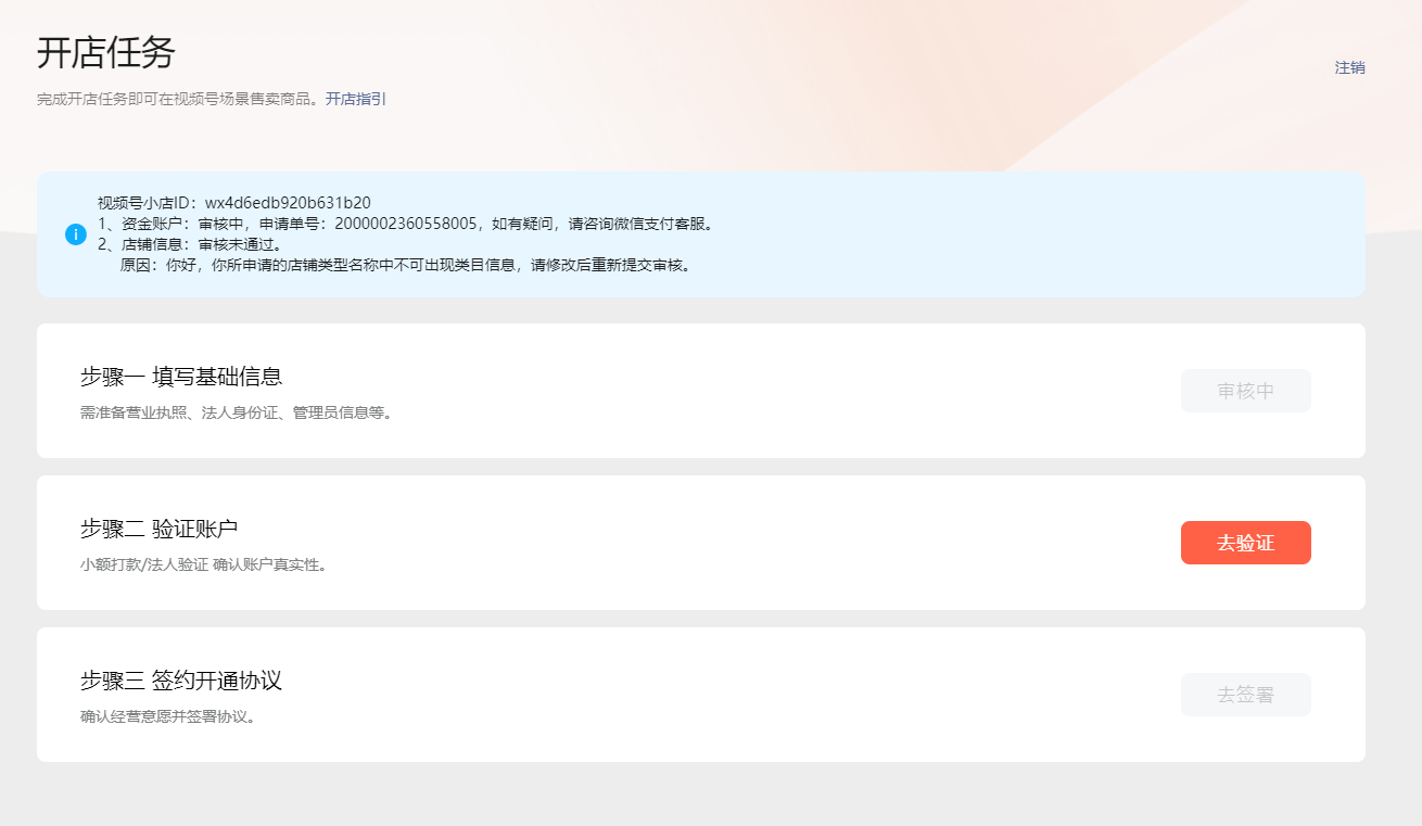 视频号小店店铺信息显示审核不通过,两天了没有修改入口?麻烦尽快解决