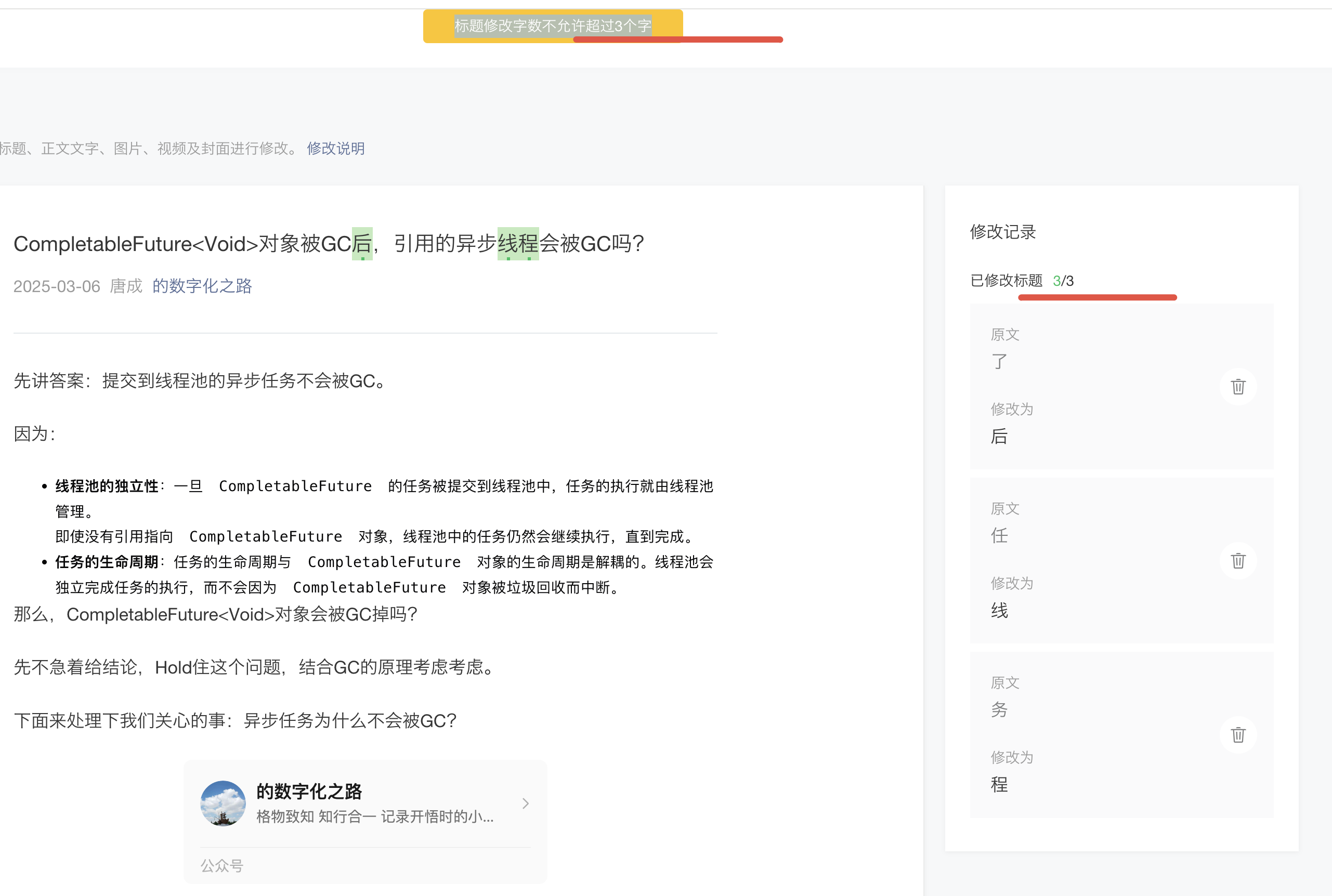 建议直接使用最新谷歌浏览器无痕模式登录公众号后台修改文章标题试试。