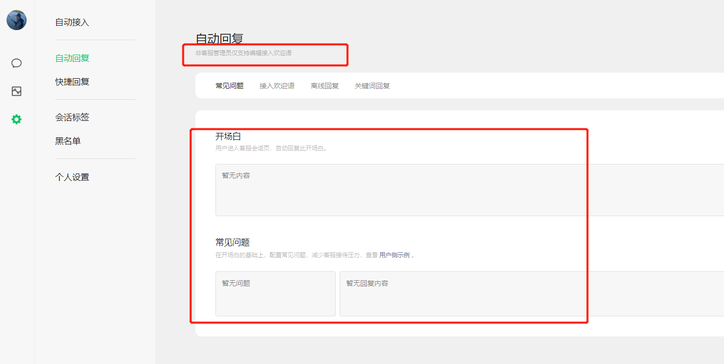 非客服管理员仅支持编辑接入欢迎语 (我两个客服号 和店长号都试过了,都没法设置啊)