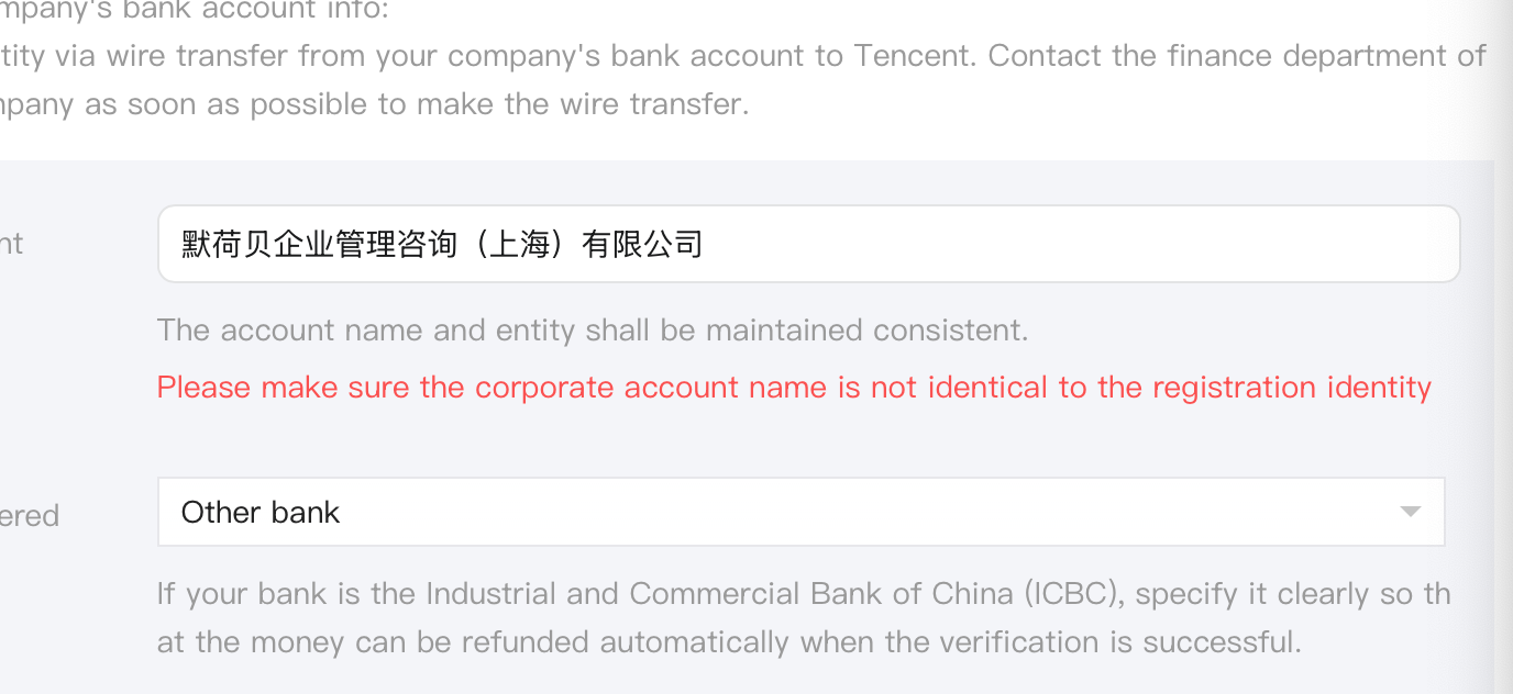申请微信公众号账户与密码激活,但是账号那块为何显示与银行账号不一致,我司一直是这个名字,请指示