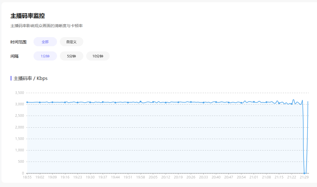 直播控制台里面,主播码率监控是有数据的,观众卡顿率的就没有数据,是什么原因呢