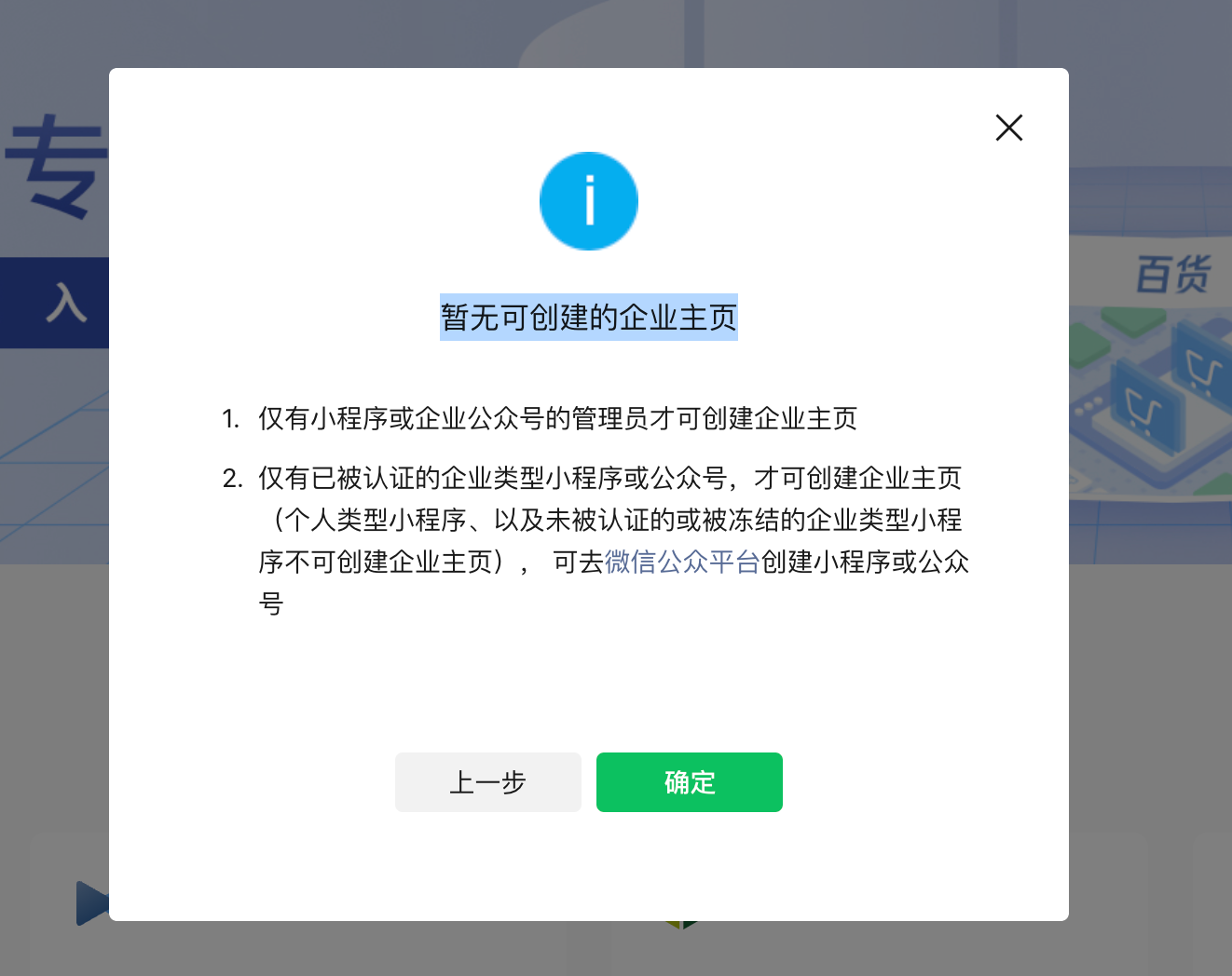 服务商入驻提示"暂无可创建的企业主页",有企业公众号?开放平台appid: wx9e443ec33206798f