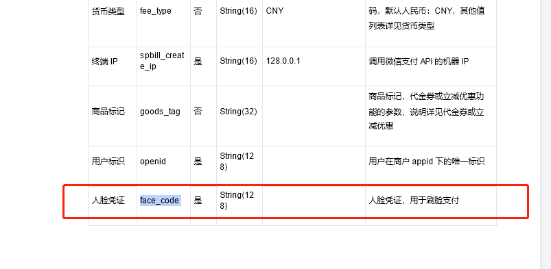这个接口中提到用这个face_code ,才能用人脸识别的结果完成支付,官方的文档里面居然没有这个接口,到底是疏忽了,还是故意让我们调用失败哦,唉