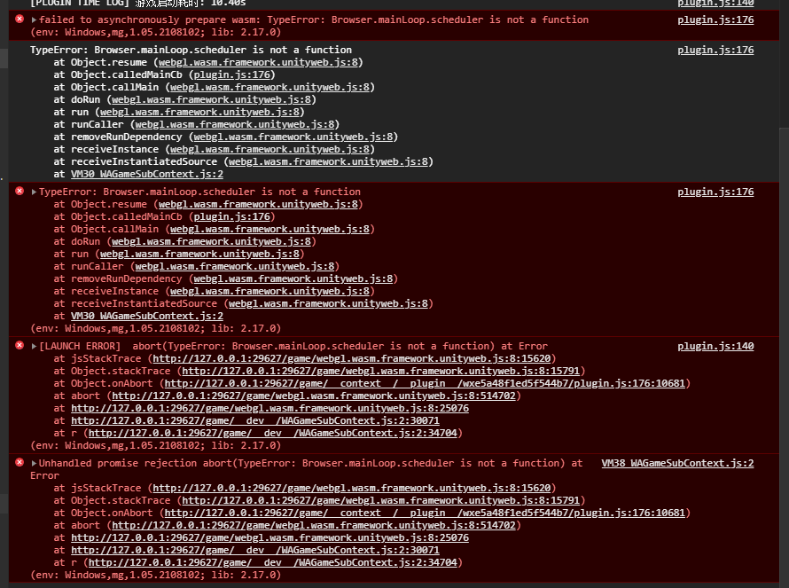 小游戏一直卡在进度条界面,拿手机调试也是卡在加载中