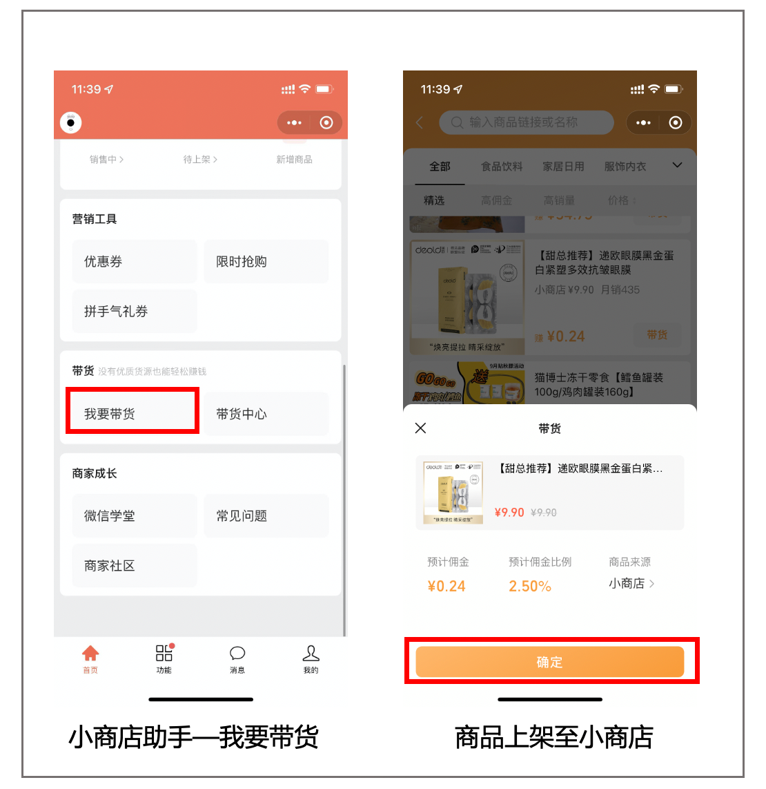 第一步:「我要带货」添加商品至小商店