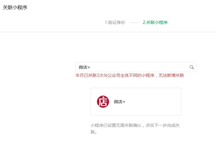 我关联的非本主体小程序没有超过3个,为什么显示“”本月已关联3次与公众号主体不同的小程序,无法新增关联”?