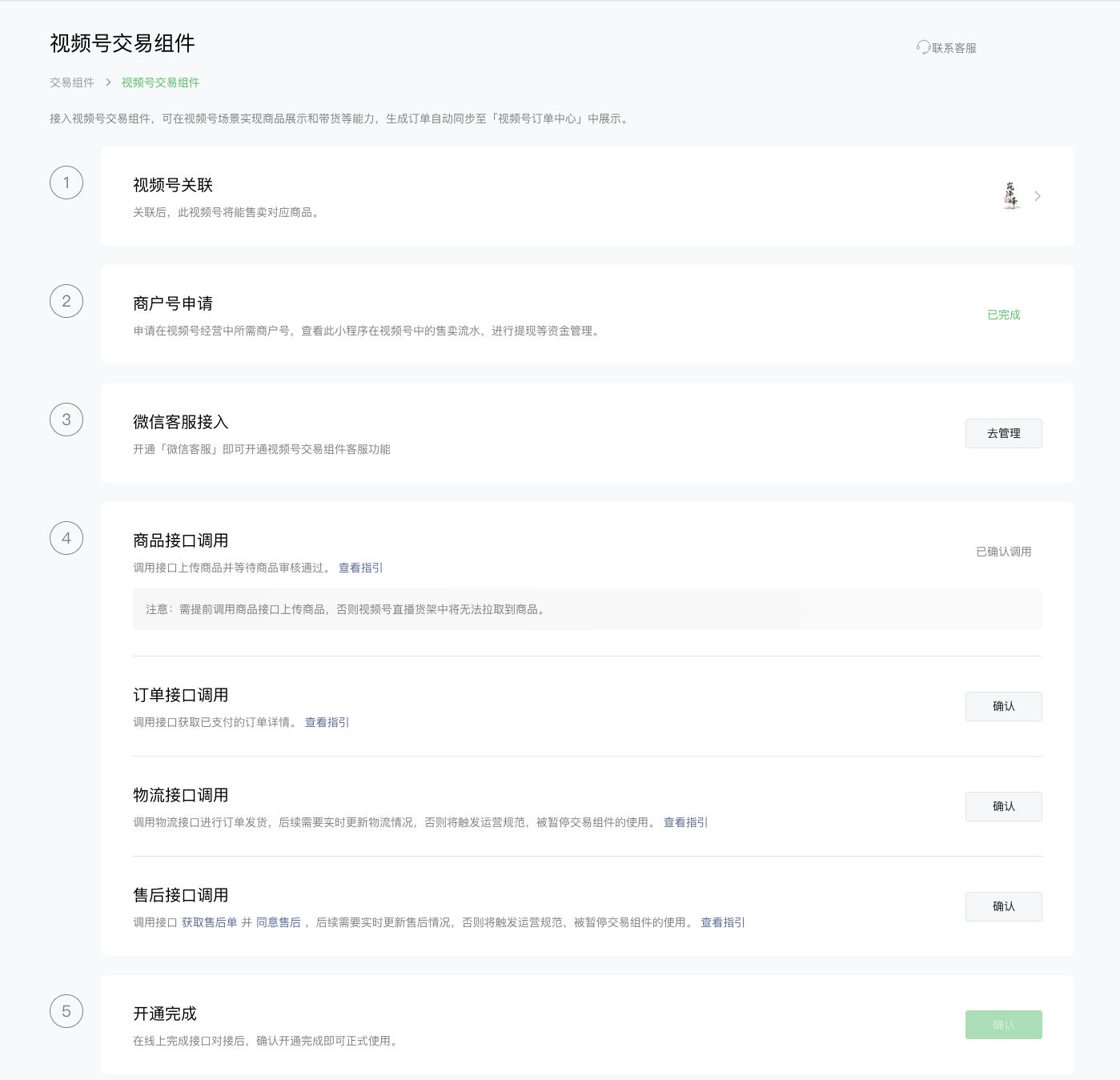 只能调用视频号小店的接口,商品调用了下视频号小店开放接口确实成功了,但是我想用的是视频号小程序自定义交易组件及开放接口