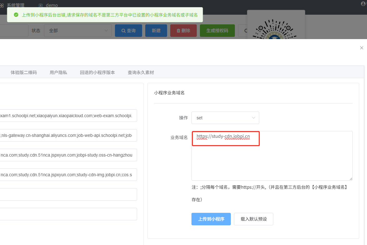 业务域名上传后,自动保存为http://,小程序那边又需要https的,导致一直提示未校验?