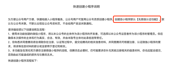 1、官方最近修改了规则,目前通过公众号快速注册的小程序无微信认证功能,小程序也不支持复用公众号认证;如果小程序需要认证,只能另外付费申请认证。