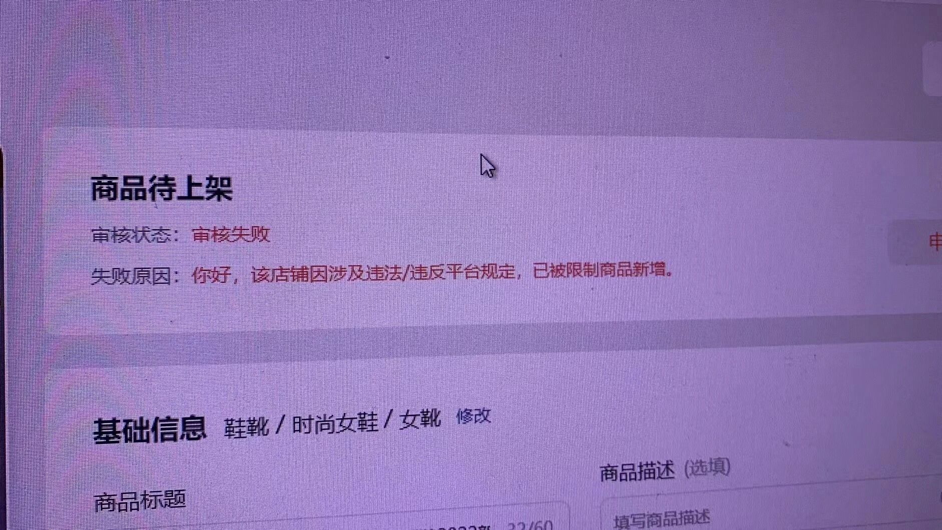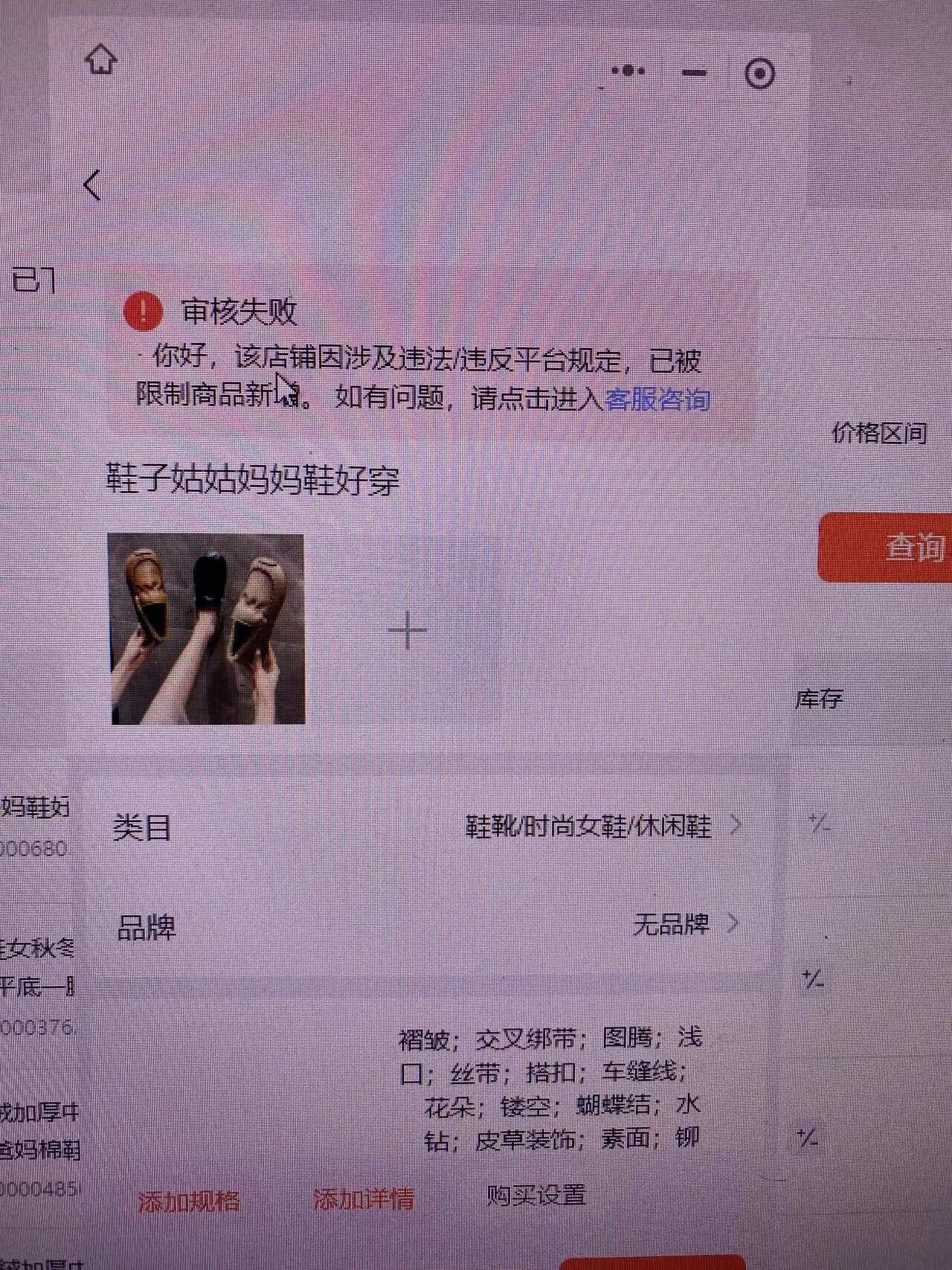 你好客服 我这个号上传新商品时 审核失败 失败原因:该店铺涉及违法/违反平台规定,已被 限制商品新增 为什么好好的会这样呀,? 后面有个申诉 但是点进去全是灰色的啥 也点不了,我想问下客服 怎么去解决? 在线等待!客服 的解答,