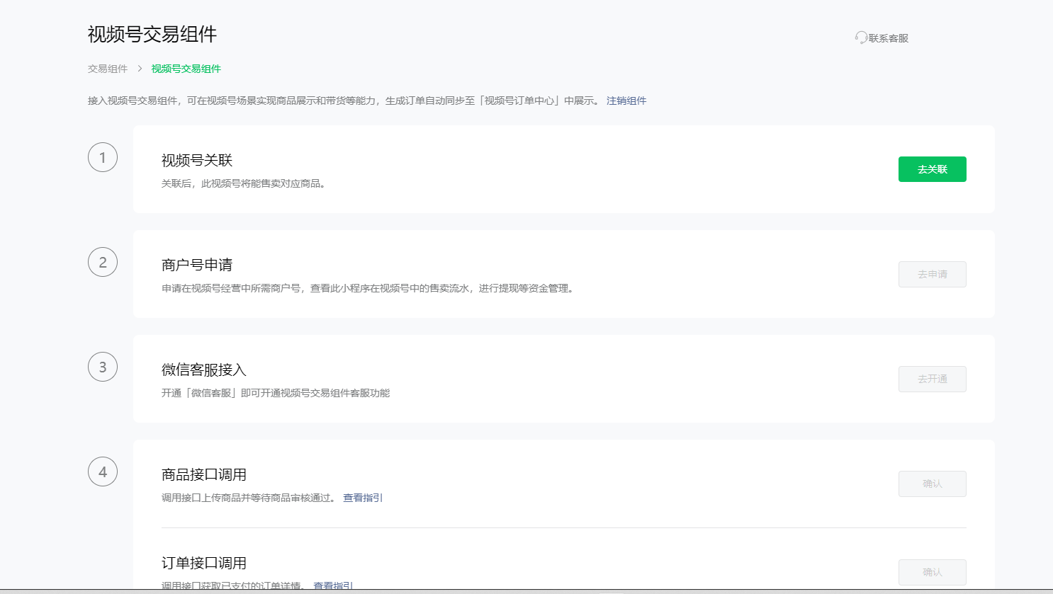 在小程序后台,想要开通【视频号交易组件】,但是使用这个小程序的accesstoken来调用接口,比如商品接口调用、订单接口调用,全部报错,帮忙看下是什么问题。