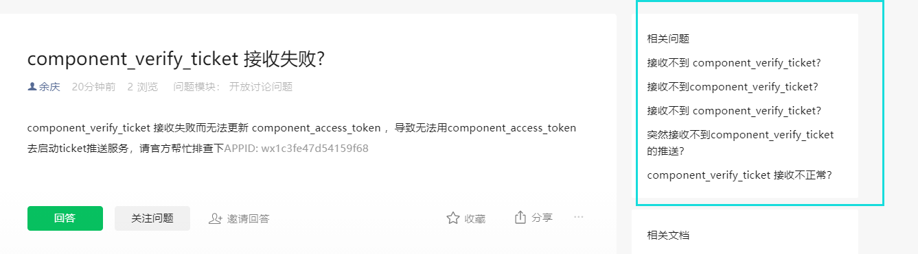component_verify_ticket 接收失败而无法更新 component_access_token ,导致无法用component_access_token 去启动ticket推送服务,请官方帮忙排查下APPID: wx1c3fe47d54159f68