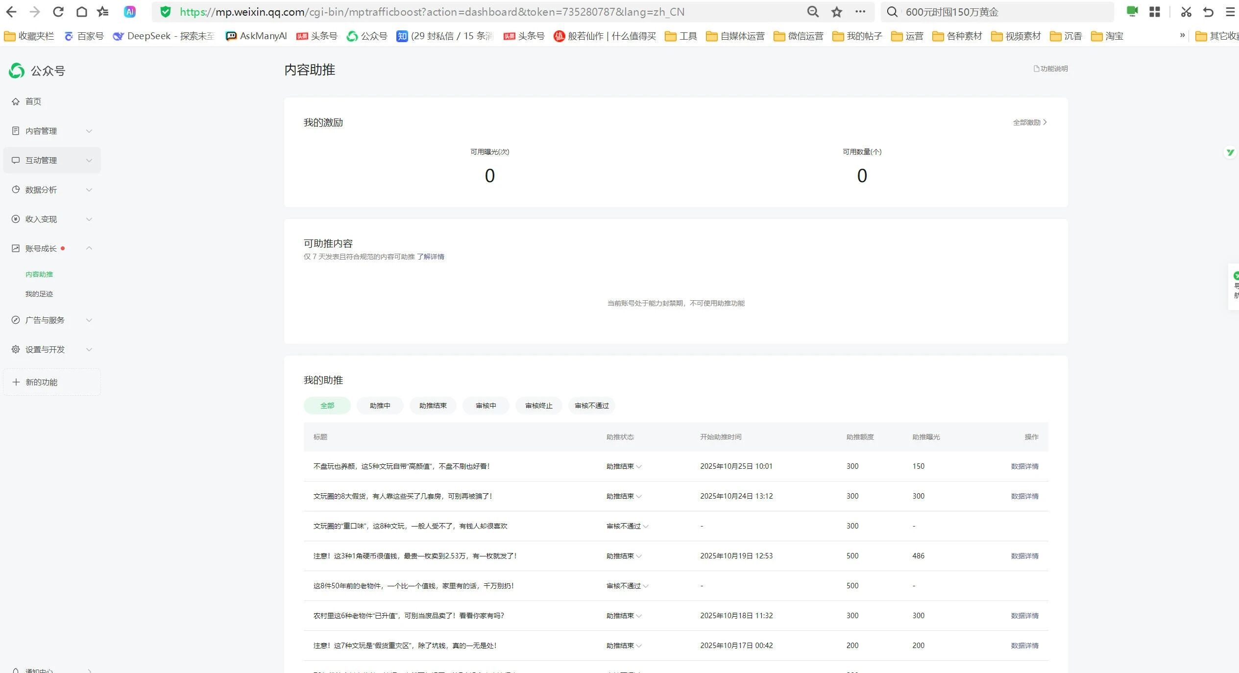 ↑↑↑↑↑内容助推功能,也因为系统误判的文章,显示封禁状态↑↑↑↑↑如上图