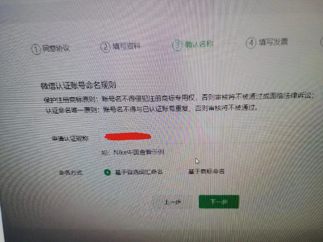你好,你这个小程序认证跟公众号没关系,用你小程序名称就可以
