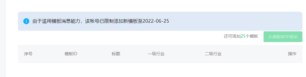 违规使用模板消息,比如用来发营销广告,被发现后就会被惩罚咯,被滥用的模板应该是因为惩罚被删掉了。关注模板消息的使用要求 https://developers.weixin.qq.com/doc/offiaccount/Message_Management/Template_Message_Interface.html