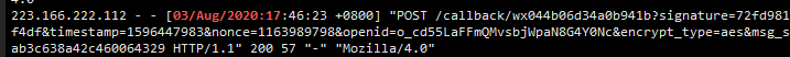 这个url和第三方配置的url信息不一致,不是通过第三方配置的,应该是小程序的url配置,请检查小程序的接收url配置
