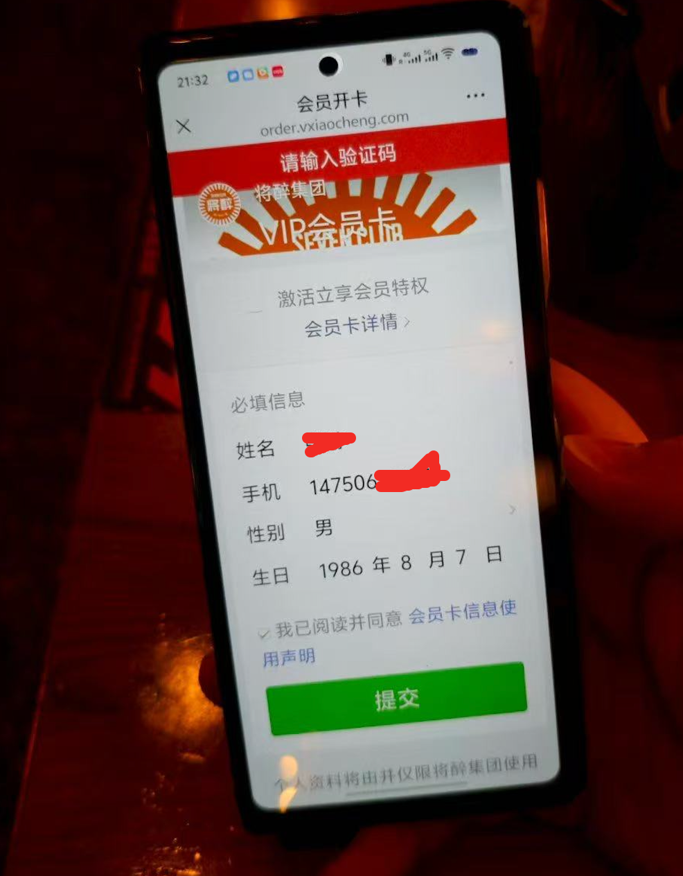 麻烦再次确认一下,这是公众号的开卡页面,然后页面也没有验证码输入框,却提示输入验证码