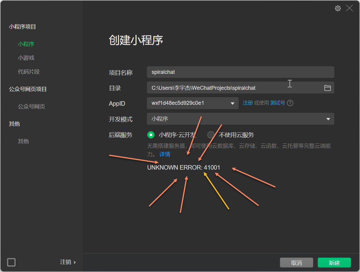 我要创建一个小程序