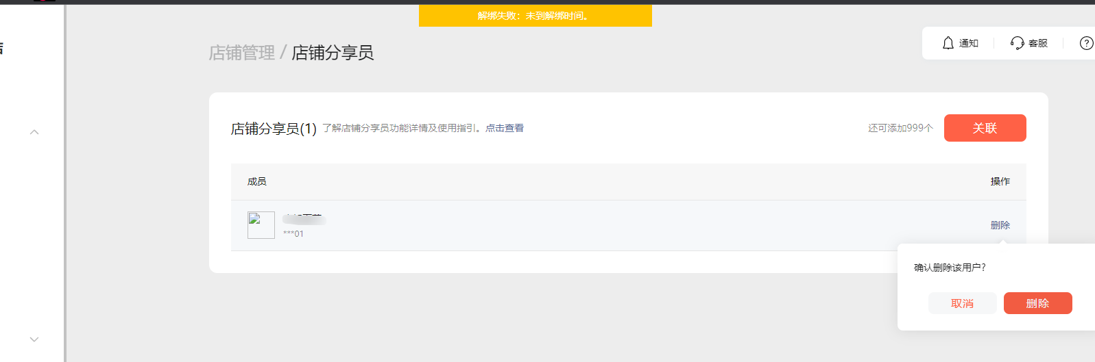视频号小店的店铺分享员无法删除,多久才能解绑