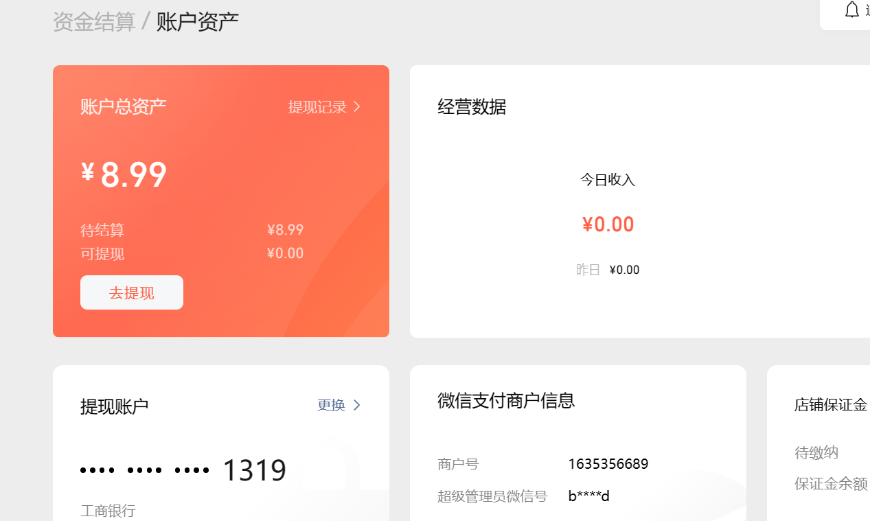 查询结算账户: 小程序/开发/拓展能力/小程序支付管理服务/资金接口/查询结算账户
