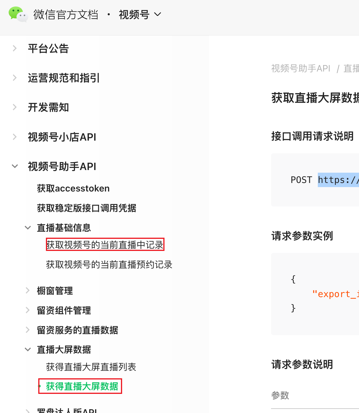 先使用视频号的appid和secret生成了access_token,使用这个access_token可以访问https://api.weixin.qq.com/channels/ec/finderlive/getfinderliverecordlist(获取视频号的当前直播中记录)和https://api.weixin.qq.com/channels/livedashboard/getlivedata接口(获得直播大屏数据)。