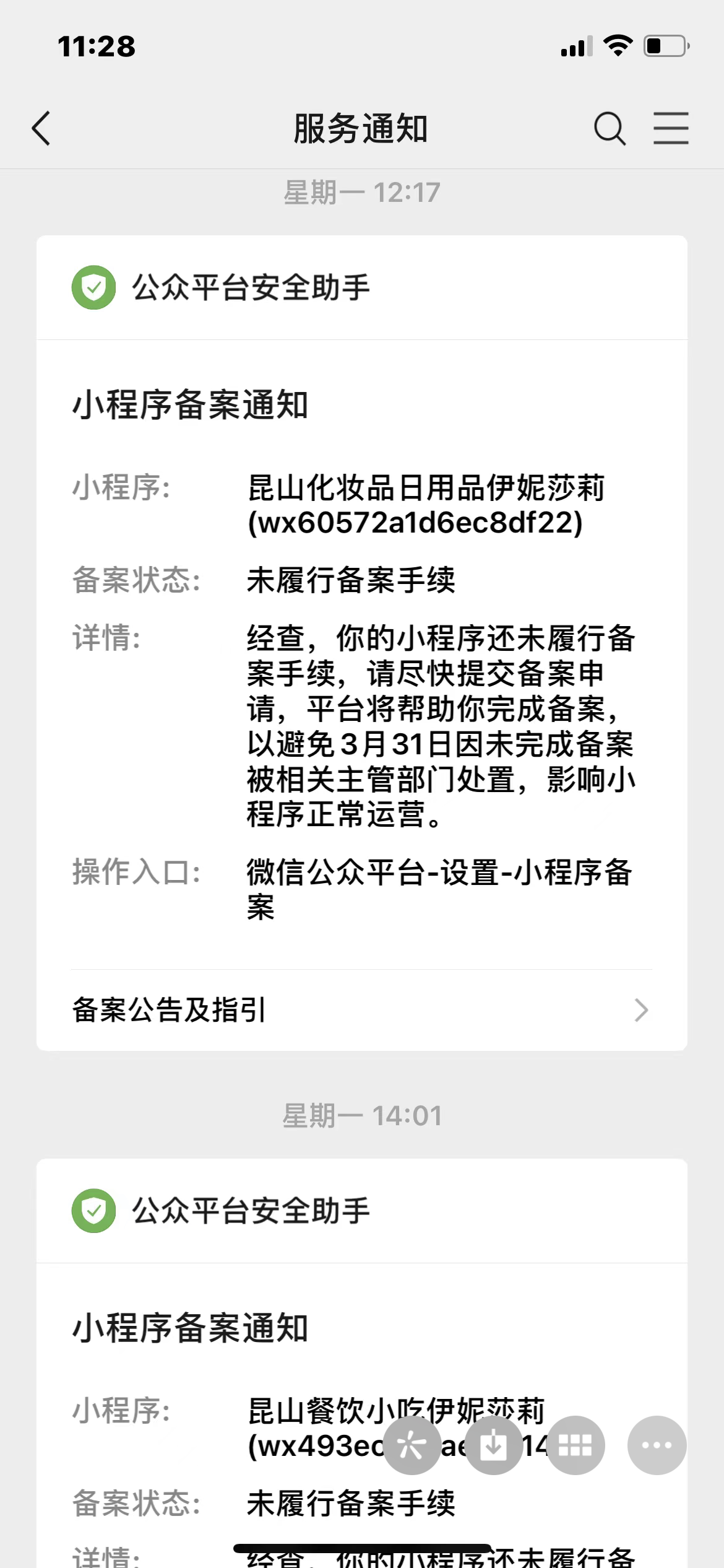 关注后,可在微信内接收相应的重要提醒。
