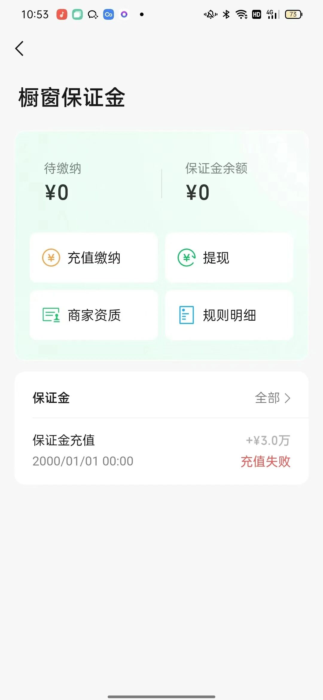 视频号橱窗保证金已缴纳,后台竟然显示充值失败(显示2000年1月1日0点,是出bug了吗?),但系统再也没有提示要缴纳保证金,这到底是充值成功,还是失败了?以及怎么开具收据呢????找不到官方客服。。。