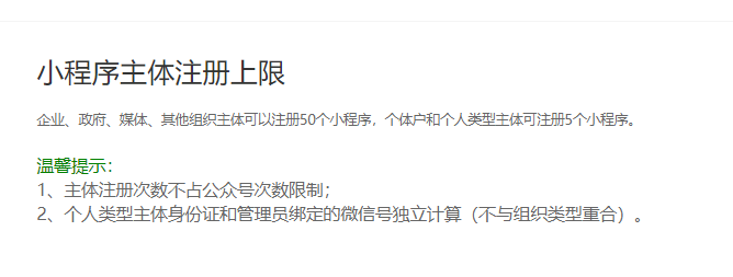第三方平台,快速创建小程序提示:管理员身份证创建账号数量达到上限