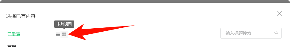 选择已有内容,然后改为卡片视图,就可以选择一次发表的内容。