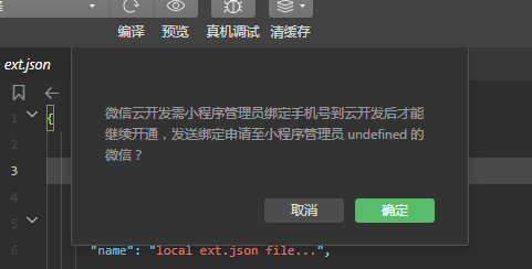 点击微信开发者工具的 云开发 ,出现这个提示是什么情况? 相同的小程序,新建一个项目再点击是正常的,可以打开云开发控制台。