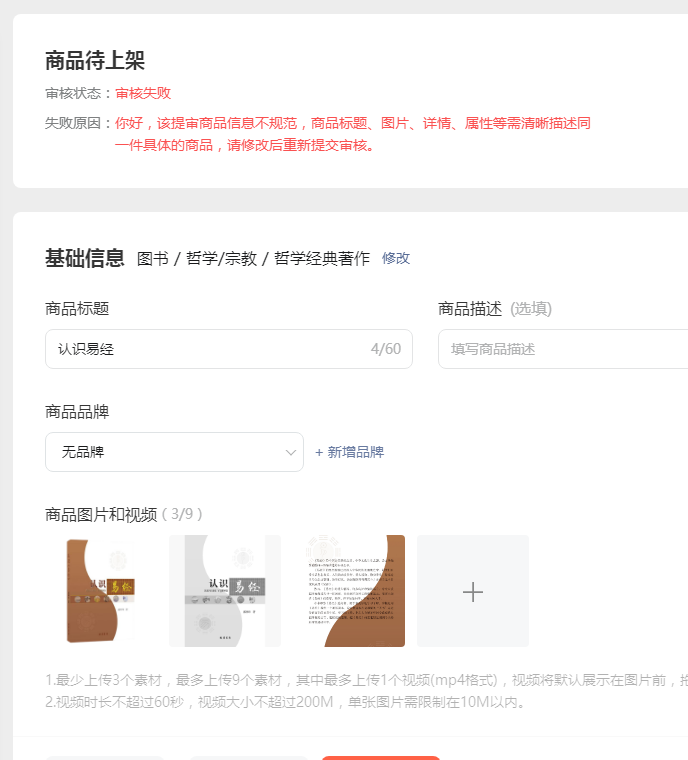 我已经提交N次,总是不通过。改了了多次,应该没问题,但还是说 标题、图片和详情说的不是同一个产品。