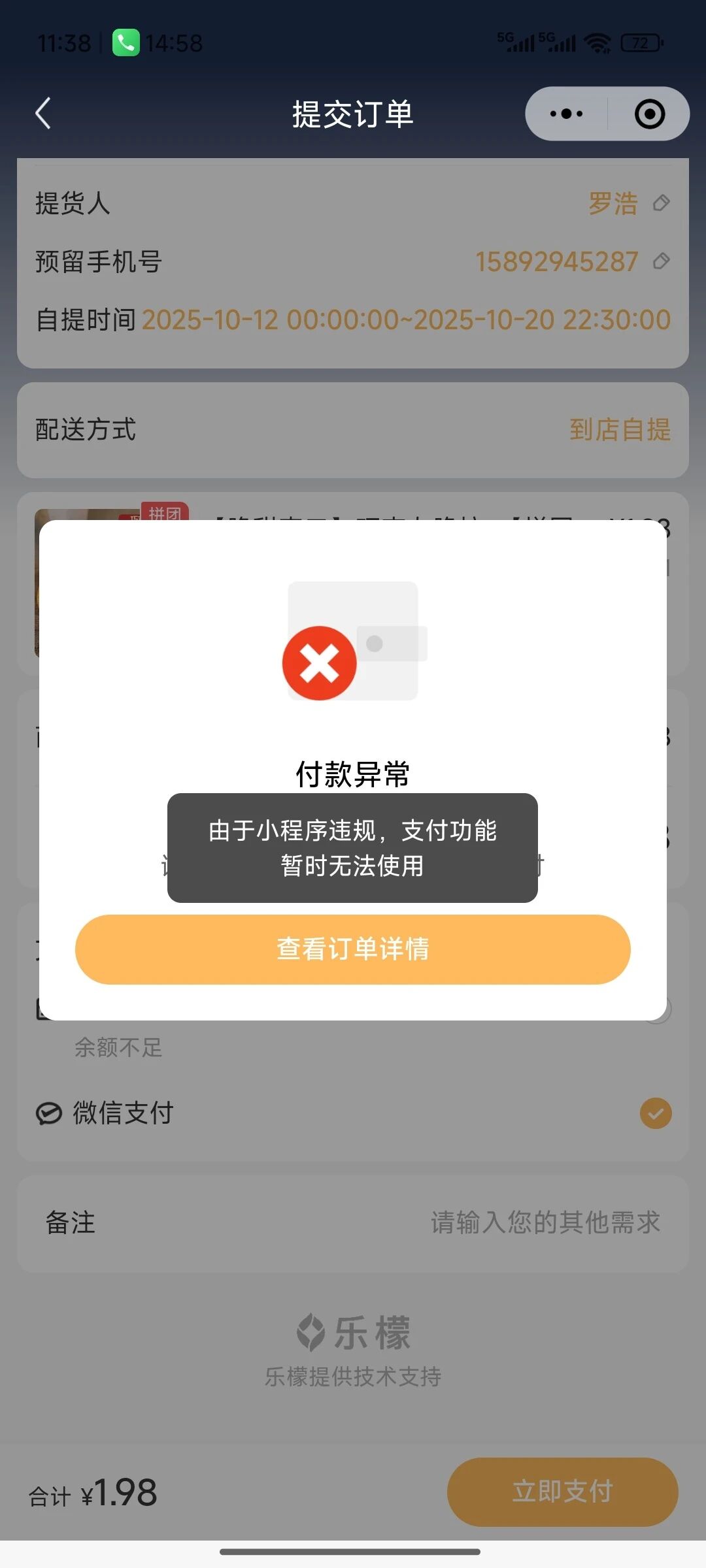 原来主体已注销!导致小程序违规!现在已从从新更换主体!但是还是无法支付!