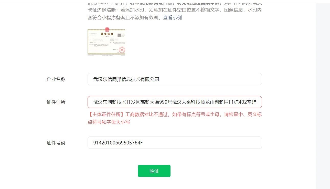 小程序备案【主体证件住所】工商数据对比不通过,请问如何解决?