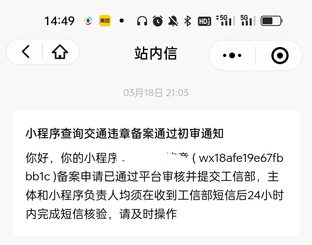 你好,小程序备案初审18号21点通过,19号下午15点还没收到验证短信,请求审核人员帮忙核实催促。超过24小时验证码就到期了,请求核实催促!