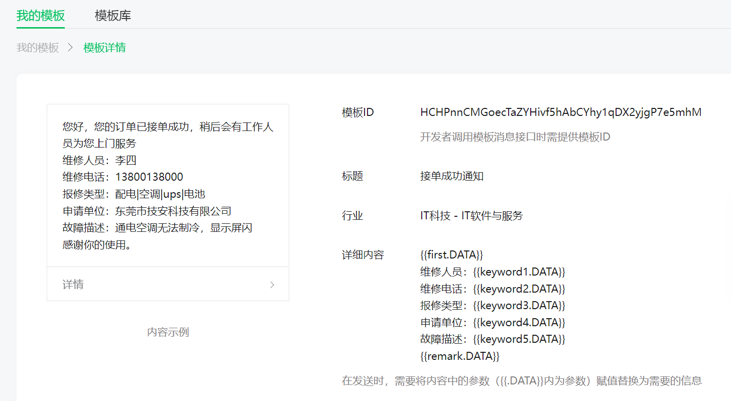 请问添加模板后,能自定义修改里面的内容吗?比如说把“维修人员”换成“服务单号”?
