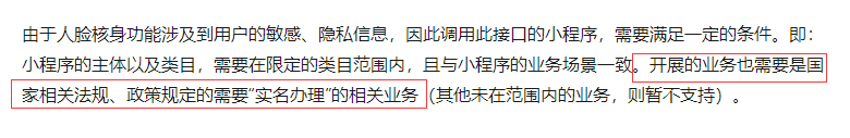 在申请人脸核身接口被这个原因驳回了,我描述的是我小程序的业务啊,怎么就不合规了