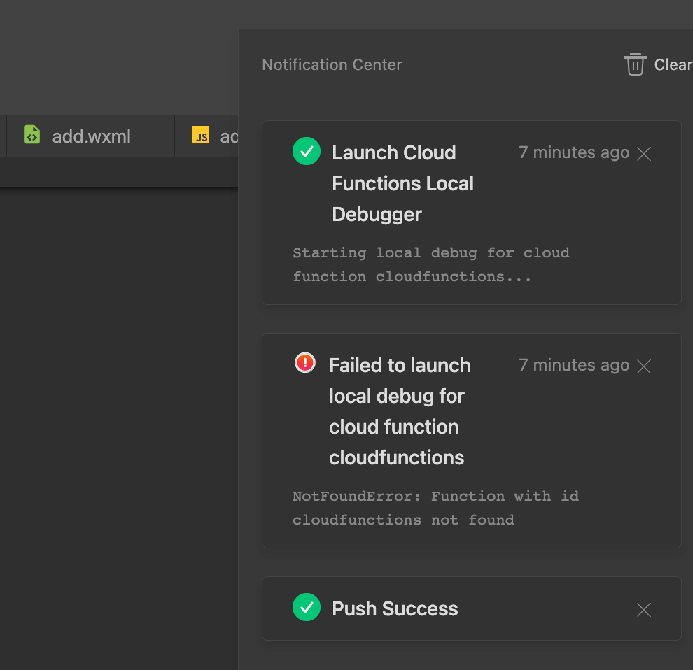 预期结果:在开发工具的小程序界面点击相关功能,会调用 本地 云函数。