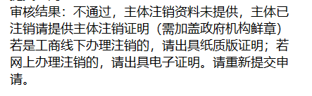 提交了主体营业执照和加盖公章的注销申请函,为什么还是注销不通过?要求提供主体注销资料,目前主体并没有注销。。